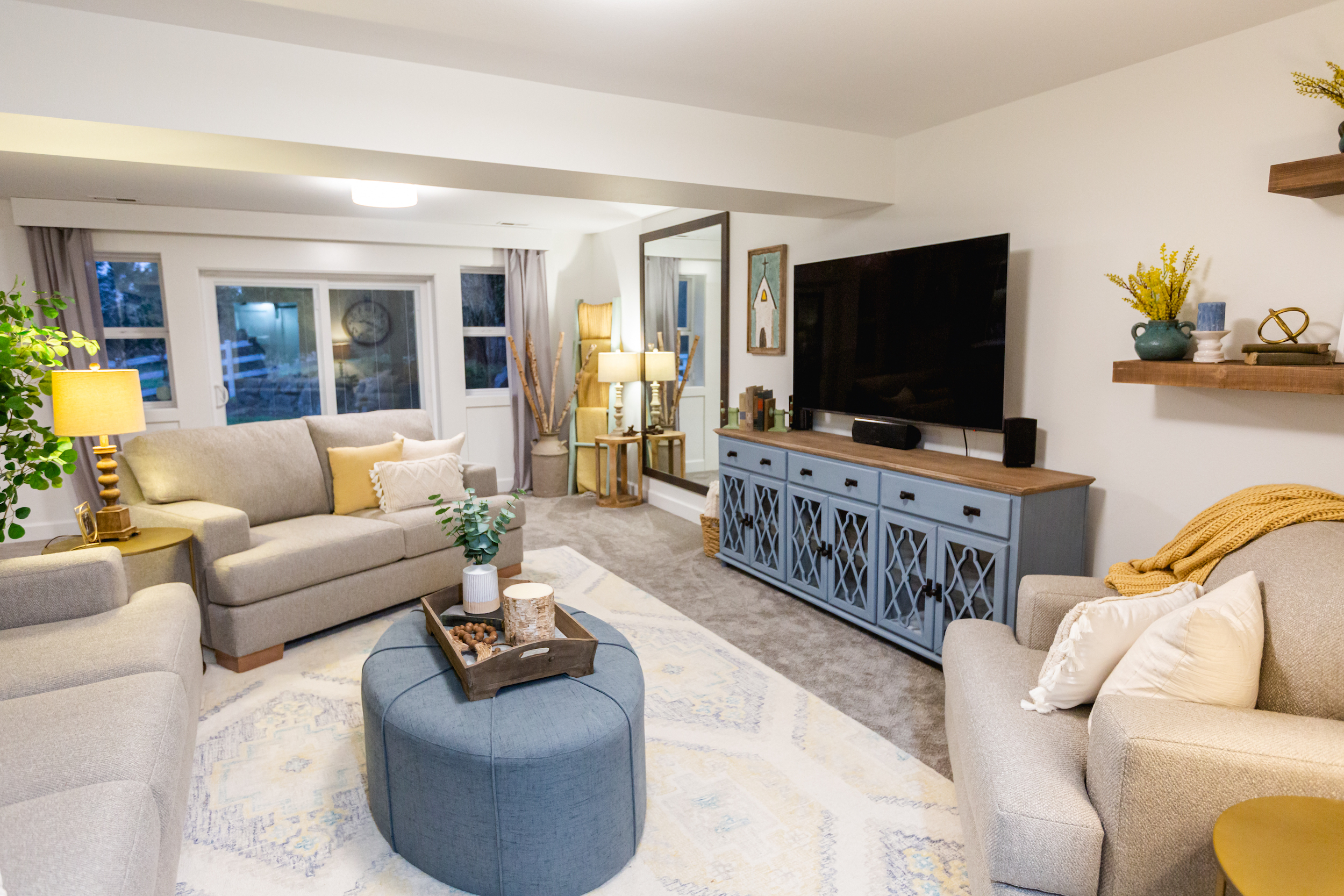 Opened up the living room with larger windows to let in more natural light and connect the indoors with the landscape